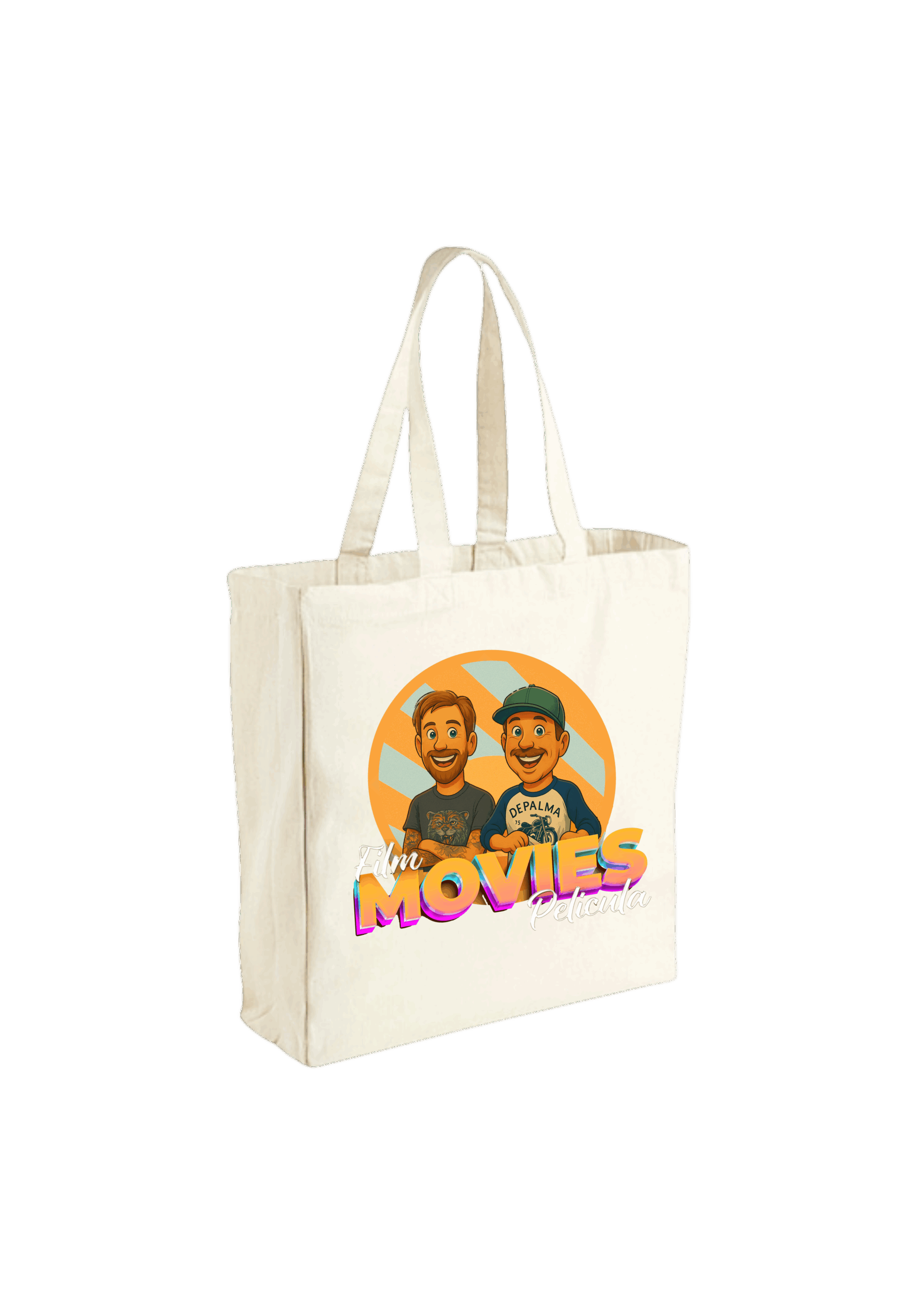 En pålitlig väska med kapacitet 21 Litres och smarta mått – ett utmärkt val när du vill köpa shoppingbag med DTF-tryck, och lika rätt som strandväska med DTF-tryck. Vill du dessutom visa ditt stöd? Köp fina merch från podden Film Movie Pelicula.